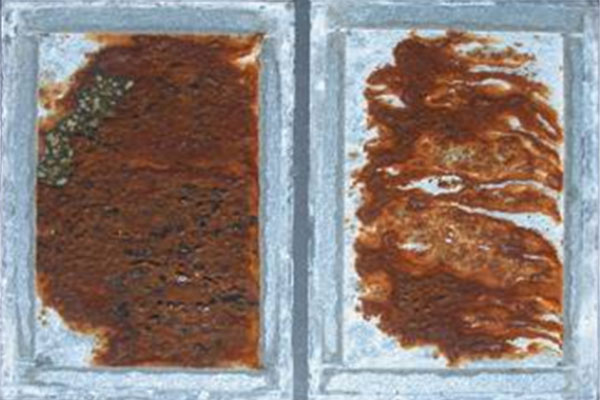 ¾ÓÉ11¸öÔµĺ£ÑóÇéÐÎ̻¶ʵÑ飬пÂÁþ50g²ÊÍ¿ÊÔÑùÍâòÎÞÏÔ×Åת±ä£¬¶ÆÂÁп50g²ÊÍ¿ÊÔÑù¾Ö²¿±¬·¢ÑÎ˪¡£